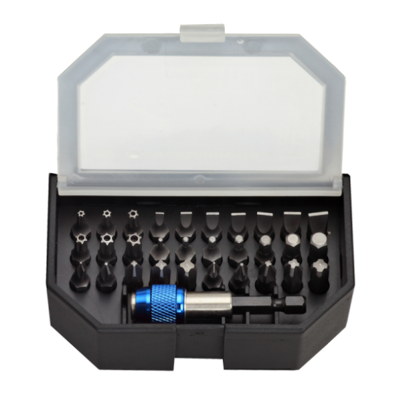 Набор бит 31 предмет BERGER BG-31SB, в который входит 31 предмет: набор бит Torx, PH, PZ, Slot, HEX и магнитный держатель для бит (полную комплектацию смотрите справа, во вкладке "Характеристики"). Каждая бита для шуруповерта из набора сделана из высокопрочного материала — хромованадиевой стали, благодаря чему биты-вставки выдерживают продолжительные интенсивные нагрузки, а насечки на бите не срезаются очень долгое время.