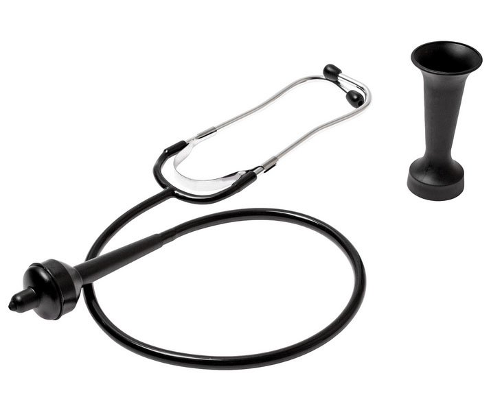 Стетоскоп механический JTC. Предназначен для проведения диагностических работ в двигателях и подвижных элементах, таких как подшипники, на предмет наличия шума. Имеет алюминиевую насадку, обеспечивающую точность определения местонахождения источника шума, подходит также для выявления утечек (клапаны, поршневые кольца, сальники). Ударопрочный.